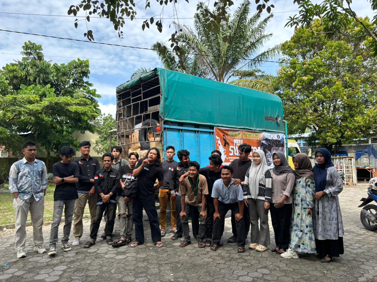 PEKANBARU_ Jum’at, 12 Desember 2025 Himpunan Mahasiswa Islam (HMI) Komisariat Syariah Hukum, Ushuluddin, dan Fapertapet (SUPER) Cabang Pekanbaru bersama Barak Coffee, Naf Konveksi, dan Kompor Foundation resmi melepas bantuan kemanusiaan untuk korban bencana di Aceh Tamiang. Bantuan tersebut terdiri dari pakaian layak pakai hasil donasi masyarakat serta logistik berupa 1 ton beras, 2 ton air minum dan 150 paket sembako yang disiapkan untuk membantu pemulihan masyarakat terdampak.