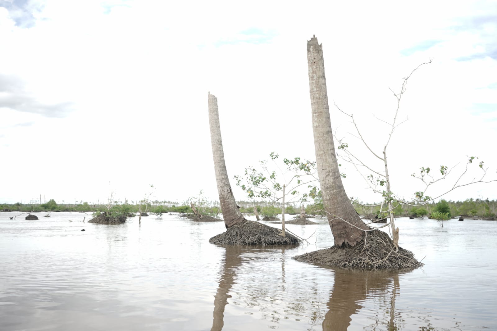 Di kawasan pesisir, Inhil masih memiliki hutan mangrove terluas di Provinsi Riau, dengan luasan lebih dari 130 ribu hektare. Mangrove ini merupakan benteng alami terhadap abrasi, intrusi air laut, dan banjir rob. Namun tekanan terhadap mangrove terus terjadi, baik akibat abrasi yang tidak diimbangi pemulihan serius maupun aktivitas manusia yang mengabaikan keseimbangan ekosistem. Ketika mangrove melemah, risiko banjir pesisir dan kerusakan permukiman menjadi semakin nyata.