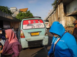 Foto: Ragam Alat Peraga Kampanye di Angkutan Umum Jelang Pemilu